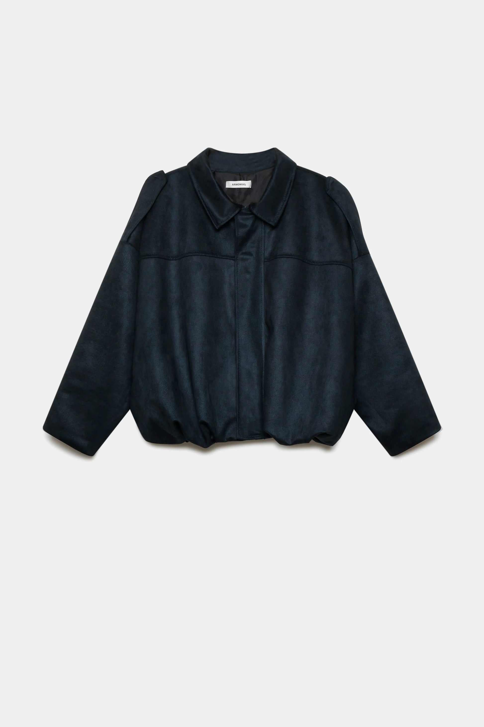 Cuello: Presenta un cuello camisero clásico que aporta estructura y contraste a la forma bomber.