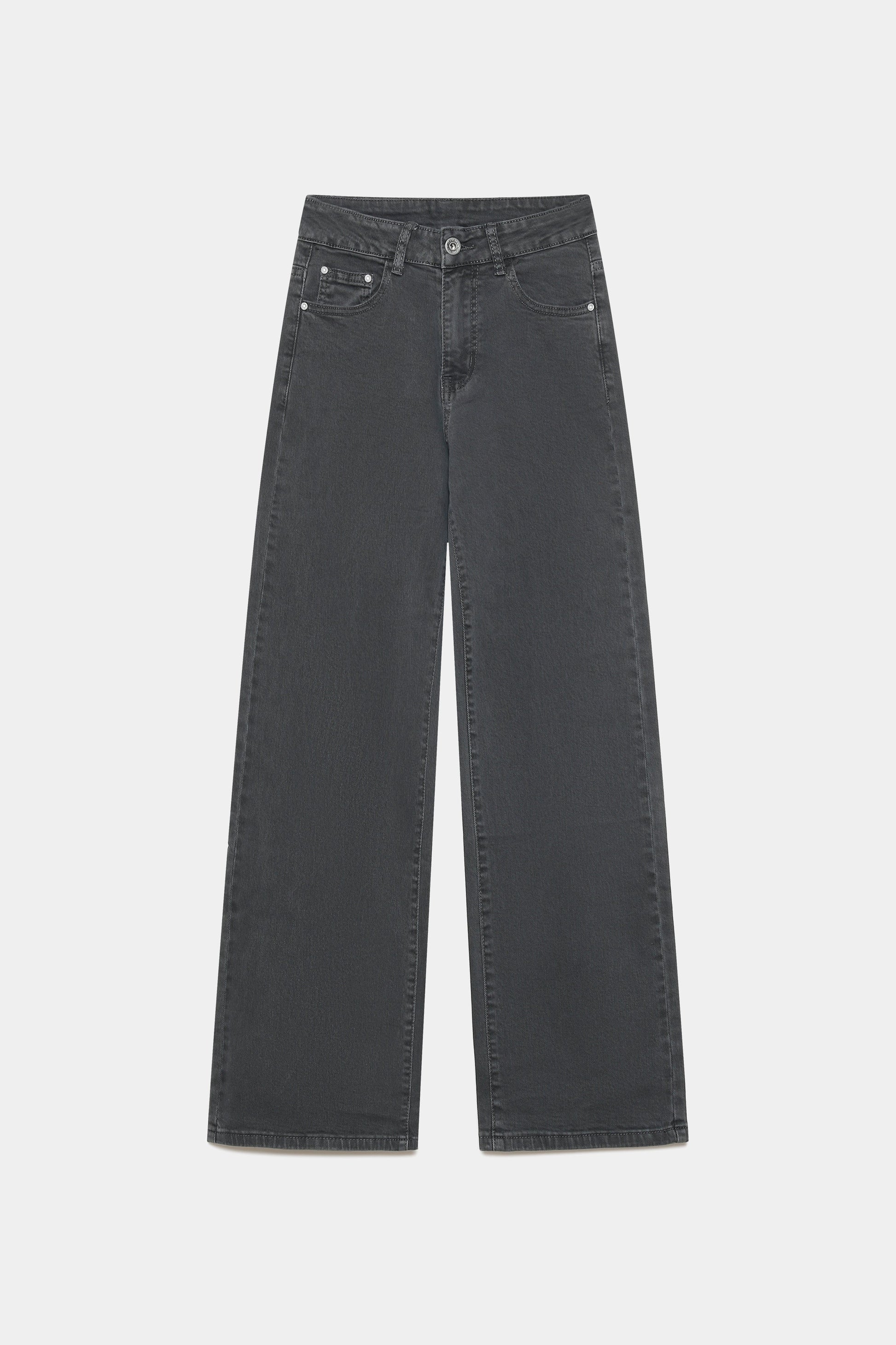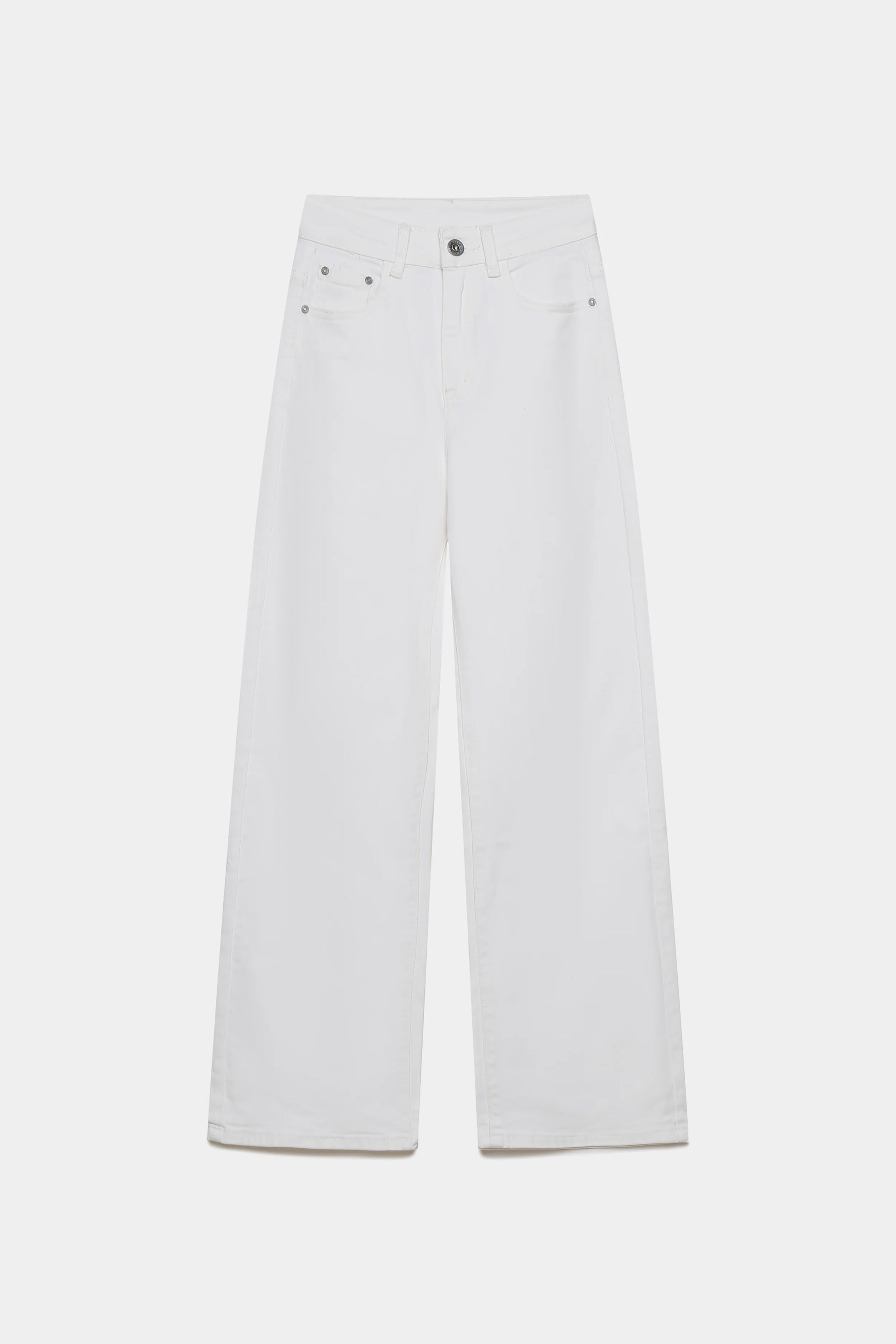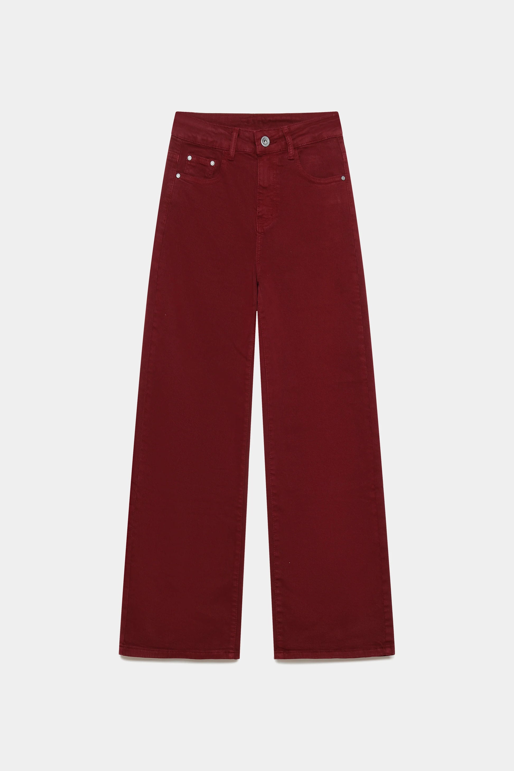 Tejido mezcla de algodón. Tiro alto. Cinco bolsillos. Cierre cremallera y botón. Diseño recto.