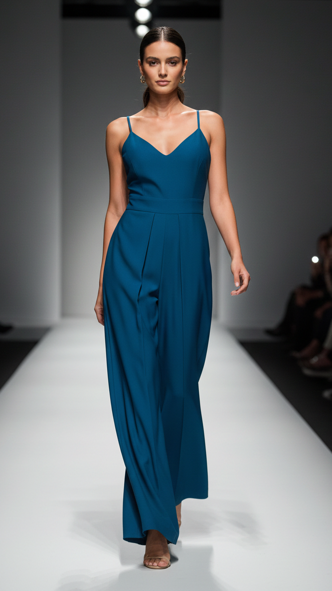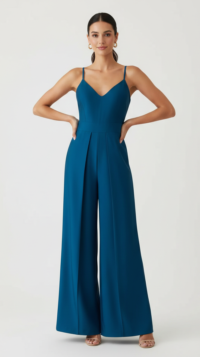 leva tu guardarropa con el Mono Lady Azul Petróleo, una pieza de diseño arquitectónico que combina la sofisticación de un vestido de noche con la comodidad y audacia de un jumpsuit. Su tono azul petróleo profundo proyecta una imagen de serenidad y lujo moderno, ideal para eventos de gala, cocteles o cenas exclusivas.